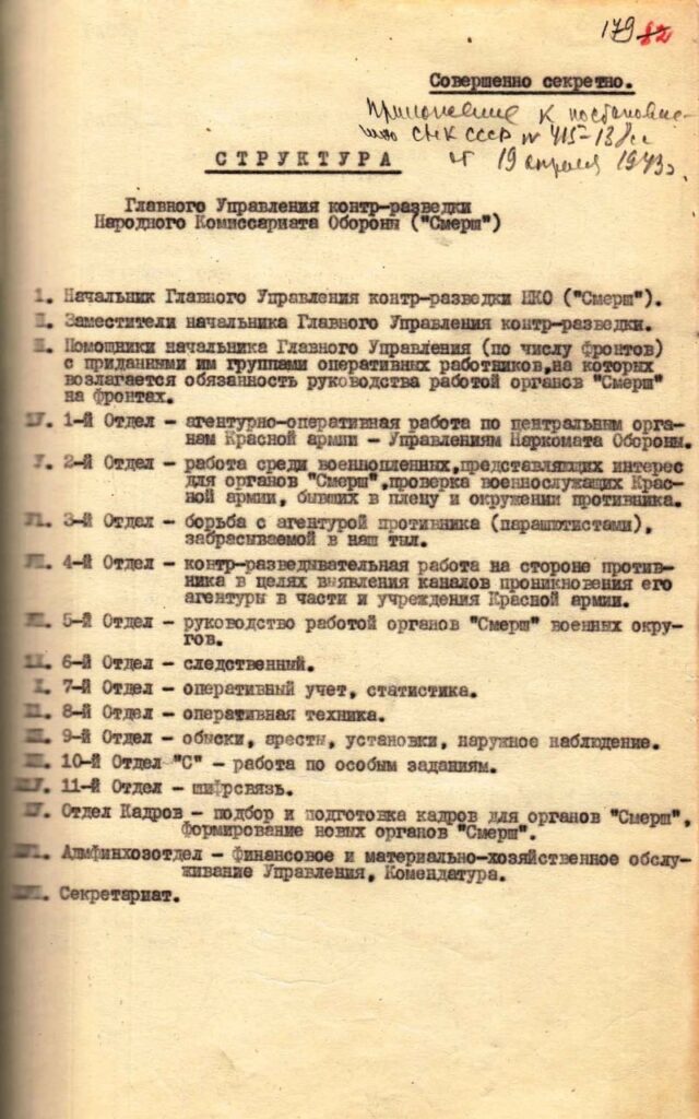 ФСБ обнародовала архивные документы к 80-летию создания ГУКР “Смерш” НКО СССР. В документах, опубликованных на официальном сайте ФСБ, раскрываются основные цели и задачи легендарной советской структуры.